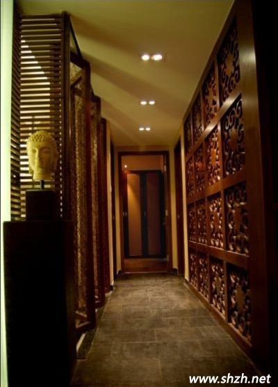 過道的裝飾物,花紋都是具有奇特色彩的南亞配飾,地板也有著同樣的效果。通過木質(zhì)材料來構(gòu)建或休閑或浪漫或異域風情的感覺,在地板的操作上也較多采用實木地板。