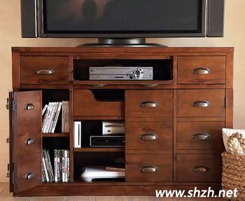 以前的老式衣柜做工都非常的精致細(xì)膩,華麗的雕花很是漂亮,厚重的實(shí)木家具也彰顯了主人的品位,只需要小小改造就是一個造型別致的電視柜了。現(xiàn)在的電視柜也越來越流行帶門的款式,這樣更有利于電視的防塵;衣柜本身就是容量很大的家具,所以可以輕松放下一個液晶電視,。只要把上面幾層的隔板拆了,再在衣柜后面的隔板上打個孔方便電視電線通過即可。原本的抽屜更是可以成為DVD等放映設(shè)備的的安置處,或者用來收納各種影碟和錄影帶。