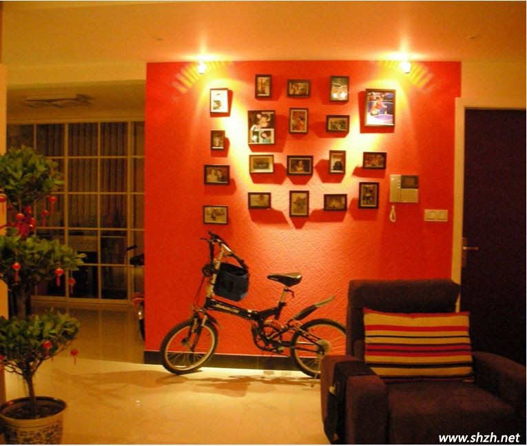 記錄甜蜜溫馨的照片墻也是上選。照片墻在現(xiàn)在的裝修中很流行,不需要煞費(fèi)苦心的來裝飾背景墻了,幾個(gè)漂亮的相框在客廳的墻上擺出造型就行。而且要是墻面足夠大的話可以將你所有的婚紗照都洗出來貼上去來“炫耀”你的幸福,以后增添小寶寶之后也可以加上去,好可愛的一家三口呢!