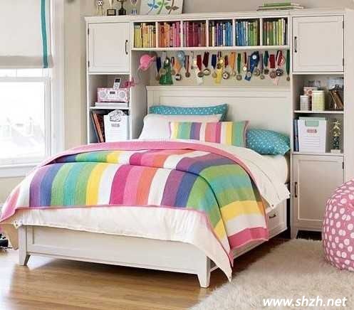 還想沒大家稱之為亂家女王嗎?或許這并不是你的本意,可大大小小的小飾品、各式各樣的裝飾擺件以及經(jīng)常要翻越的書籍在不知不覺間都讓你的臥室變得慘不忍睹了,那么為何不干脆利用床頭空間來做一個收納型的書柜,讓你的這些小物品都乖乖的呆在里面,這樣臥室想不干凈都難啦!
