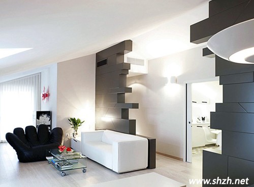 黑白永遠是最搭的色彩,而且這種色彩的裝飾,不僅時尚美觀,還盡顯奢華,體現(xiàn)主人的生活品味。白色的沙發(fā)也許你并不覺得新奇,反而很平淡無味,那么,旁邊黑色的造型獨特的單人沙發(fā)是不是給居室?guī)砣の赌??也給單調(diào)的沙發(fā)增添了幾分樂趣,就仿佛一個是性格沉穩(wěn),而另一個是調(diào)皮搗蛋的,互補性非常強烈。