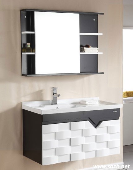 黑白兩色的搭配,永遠都那么經(jīng)典,而且永不落伍,非常奢華的感覺。收納柜采用了新穎獨特的立體浮雕設(shè)計,使得這個浴室柜變得十分時尚,很有藝術(shù)的氣息。而上面的浴室柜采用了兩邊大小不同的收納方式,左邊比較狹小,可以收納較小的物件,而右邊比較大, 可以儲存大的物品,超強大的收納功能成為了這個衛(wèi)浴間的點睛之筆。