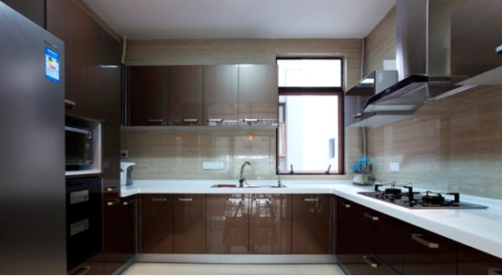 由于本案是二層的疊墅,負一層還有一個比較大的空間,設(shè)計成一個大開放式書房,另加一個客房,還有工人房兼儲物間。另外,一樓過道通過墻體的改動拓寬了,使空間拓寬;