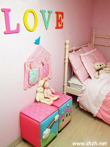 游戲凳子都是柔軟的皮藝,可以保證孩子玩耍時(shí)碰到也不會(huì)受傷,床品采用了溫馨舒適的粉色,兩個(gè)小茶幾凳拼湊在一起,正好是一副可愛的童話世界,分開來(lái)看也可愛無(wú)比,令整個(gè)空間看起來(lái)更顯甜美。
