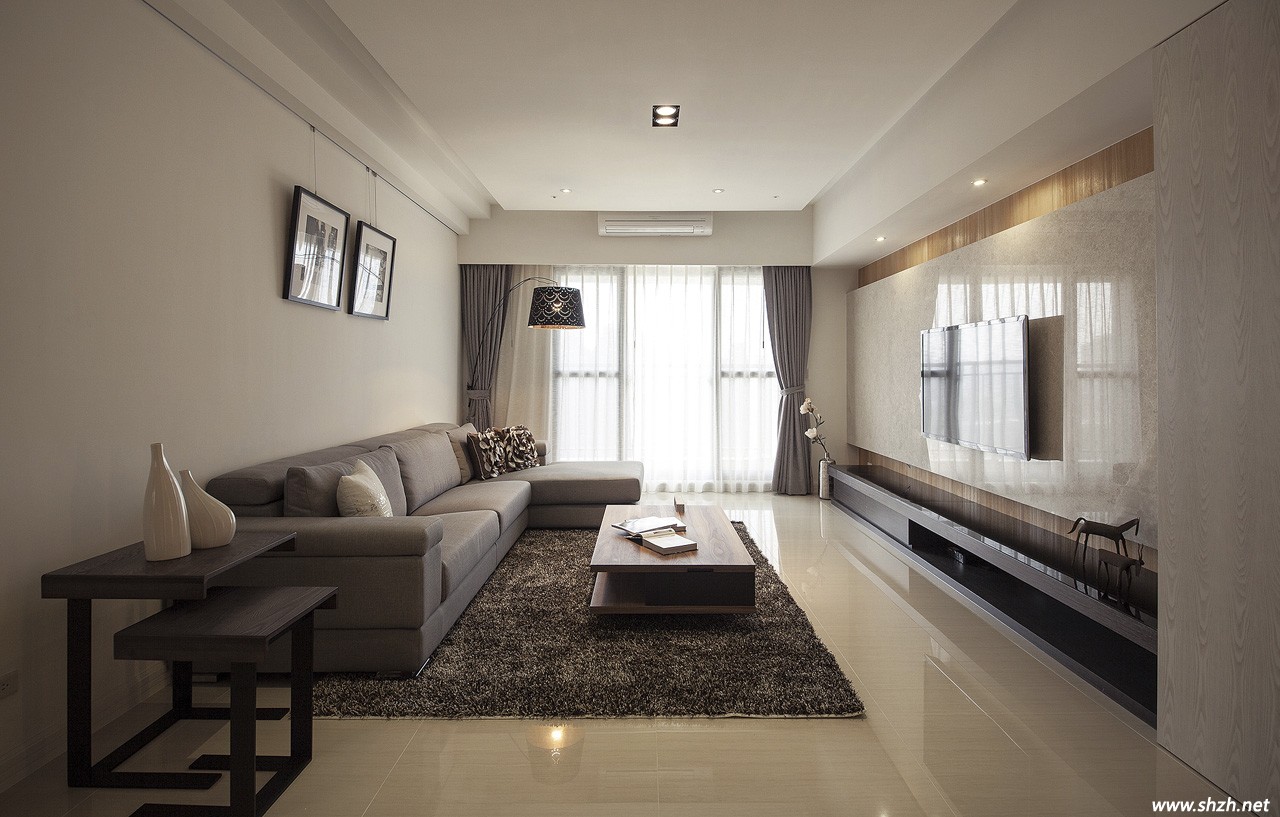 客廳利用“線與面”的手法進(jìn)行大面積處理,以中性的灰色為基調(diào),舒適宜人。其中電視墻的設(shè)計是設(shè)計師與屋主討論最久的部分,因為屋主喜愛木材做背板,設(shè)計師則建議耐久性的石材,經(jīng)過意見中和后,決定以木材搭配石材來鋪設(shè)電視墻,兼具溫暖、粗獷,饒富趣味。