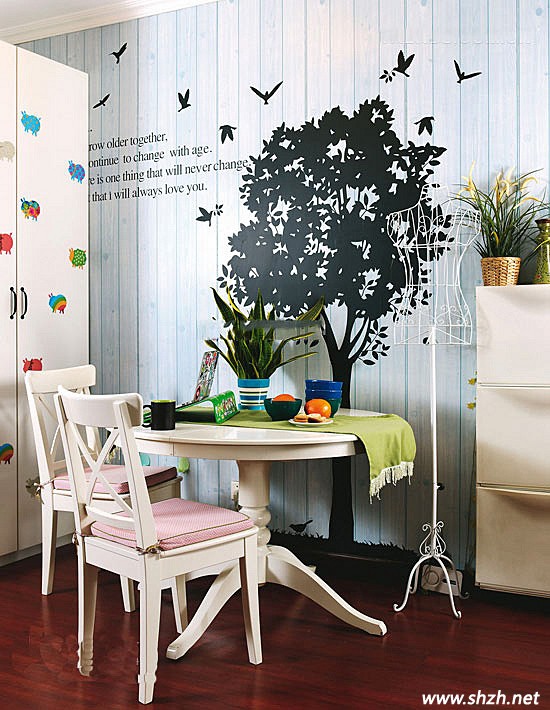 惟妙惟肖的紅實(shí)木質(zhì)地板,是最顯東南亞風(fēng)格的,保留原始本色。小戶型的我們想要更加突出東南亞風(fēng)情,只能把墻面和擺設(shè)發(fā)揮到最大用處,墻上栩栩如生的雨林繪畫展現(xiàn)大自然氣息,桌子上一盤棕櫚葉盆栽處處讓你融入東南亞風(fēng)情里面。