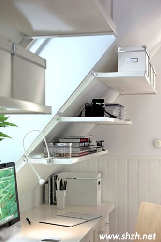 一般現(xiàn)在裝修的人都不會在意房間是否有電腦室,因為我們都喜歡把電腦抱在床上玩,但是這是很不衛(wèi)生的。那既然樓梯區(qū)空閑的,又比較低比較宅,在下面放置一個電腦桌,樓梯上再搭幾快板,簡單的電腦室就成行了吧。桌子上擺上一盤仙人球就更加完美了。