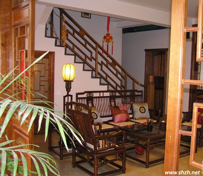 簡(jiǎn)單舒適是現(xiàn)在復(fù)古風(fēng)的一向趨向,告別華麗的擺設(shè)和裝修,只有中國(guó)味十足的桌椅,樓梯和隔斷,好像在鏤空的世界里面,充滿紫檀木的復(fù)古味道。乳白的墻壁上在昏暗的光線下很有味道。淳樸的家具顏色讓一切看起來(lái)都特別舒服,沒(méi)有一點(diǎn)壓力。
