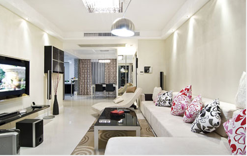 概要: 大面積的黑色烤漆玻璃和黑色系的電視機(jī),音響與淺色系的和諧、統(tǒng)一形成了鮮明的對(duì)比,給人一種時(shí)尚氣息。米色的沙發(fā)搭配簡(jiǎn)單的小碎花靠墊給人舒適溫暖的感覺,使簡(jiǎn)約中又不失溫馨??蛷d主要以白色為主顯得很清爽,適合白領(lǐng)新婚夫妻。瓷磚是現(xiàn)在很多客廳裝修的選擇,對(duì)于年輕人來說追求自己的舒適才是重點(diǎn)。瓷磚相對(duì)地板來說不僅方便平日清潔而且還能提升客廳的亮度。