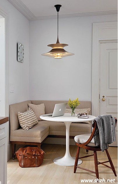 概要: 你家有多大平方,餐廳占地有多大,在上海這樣天價的房價能有個一句戶也是不錯的,那么餐桌的擺放也是一個問題,好在一兩個人生活,角落就是很好的餐桌擺放位置,因地制宜充分的利用了死角的空間,還裝飾了居家,可謂一舉兩得啊,靠著角落擺上小小的L型的沙發(fā),干凈爽快,不僅能當作餐桌。