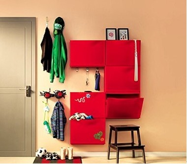 上方則專屬于是父母的儲(chǔ)物區(qū);另外,為了避免空間的浪費(fèi),在柜子中間空出的部分可以安裝一些小掛鉤,用來掛鑰匙或者雨傘等常用小物件。