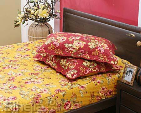 黃色為底床罩+紅色花朵靠枕 一幅田園氣息在臥室洋溢。以一種恬淡陶然的田園情懷再現(xiàn)精致浪漫的都市品質(zhì)生活:聞著空氣中彌漫著愛的氣息,那一份溫馨,那一份感動,盡在這一瞬間??臻g,因?yàn)榈玫结尫哦始姵省?/P>