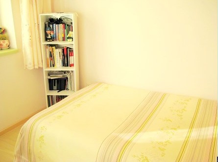 臥室沒有過多的復(fù)雜設(shè)計(jì)。粉粉的床鋪配上那一流蘇,顯得無(wú)盡的浪漫。