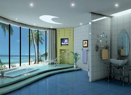 大衛(wèi)浴間面積至少應(yīng)該早10平米以上,有了這么大的衛(wèi)浴間,當然應(yīng)該讓它的附加功能得到加強,這時候的衛(wèi)浴間已經(jīng)不是單純意義上洗澡、方便的所在了。
