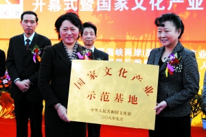 中國建筑裝飾協(xié)會會長馬挺貴(左五)參加文化部向漆寶齋授牌的開幕儀式