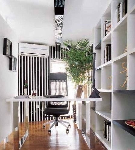 中戶型空間不大,所以在空間規(guī)劃上得特別細(xì)心??臻g小并不代表不精彩,一道轉(zhuǎn)墻的設(shè)計(jì)成為二層空間最大的亮點(diǎn)。分隔書房與臥室空間的是兩道半墻,其中一道可以自如旋轉(zhuǎn),關(guān)閉時(shí),兩個(gè)空間各自獨(dú)立,看電視的與看書的各不影響;而打開時(shí),兩個(gè)空間相互貫通,隔離而不疏離。