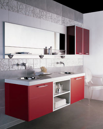 鮮亮的顏色永遠(yuǎn)不會(huì)被設(shè)計(jì)師遺忘,博洛尼推出這款火紅的衛(wèi)浴主題墻,夏日的熱力**勢(shì)不可擋,尤其能凸現(xiàn)摩登女郎們的驚艷魅力。通體的紅色烤漆浴室家具加上銀色不銹鋼入墻龍頭,以及如蕾絲般的Art Deco風(fēng)格瓷磚裝飾,就這樣整體造型吧,即便是十分自我的衛(wèi)浴空間,也要Show出最響亮的時(shí)尚宣言。