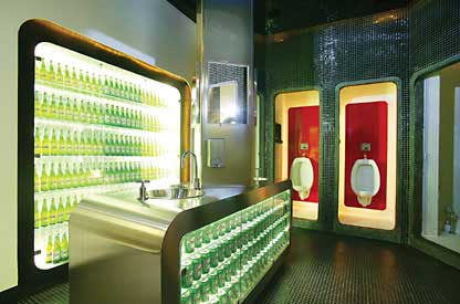 概要: 雖然一般人認(rèn)為盥洗室只是一個(gè)功能性的空間,但經(jīng)建筑師和設(shè)計(jì)師巧思創(chuàng)作,不登大雅之堂的馬桶也能躍為令人驚艷的室內(nèi)主角,設(shè)備豪華程度不亞于其他家私裝潢,甚至成為熱門觀光景點(diǎn)?! ∨_(tái)**中中友百貨公司推出的十三套主題盥洗設(shè)備,從普普藝術(shù)到巴洛克風(fēng)格,將馬桶及其盥洗空間設(shè)計(jì)成叢林或水族世界,每套主題盥洗設(shè)備造價(jià)與裝設(shè)費(fèi)用高達(dá)三萬(wàn)美元以上。