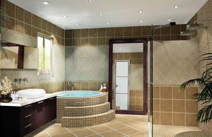 醇厚濃郁的咖啡色受到越來越多上層人士的青睞,用博洛尼深咖啡色瓷磚作為主色裝飾墻面和地面既顯檔次又便于收拾打理。在長方形的衛(wèi)浴空間中,淺色瓷磚大面積的鋪貼墻面,U型的咖啡瓷磚當(dāng)之無愧成為浴室中最具創(chuàng)意的設(shè)計(jì),墻面與地面聯(lián)合貫穿,將衛(wèi)浴分隔為兩個(gè)部分。