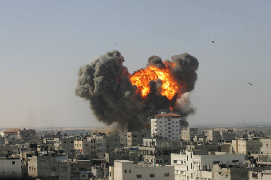 13日,以色列空軍向拉法投擲的**引起巨大的爆炸