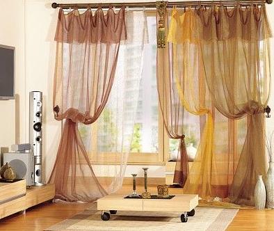 絲質窗簾從來都屬于春夏兩季,時尚的流動從來沒有忽略過它。透明類的絲質面料,手感柔軟、紋路流暢,用做窗簾,既浪漫又高雅。良好的透氣性也適合做襯簾,這種襯簾適合任何季節(jié),如設計成簡潔樣式的話,就一年四季都不用更換襯簾了