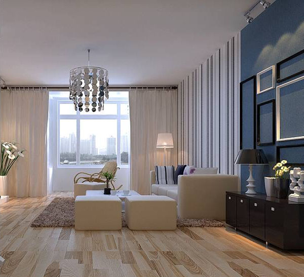 途中為一樣望去就是很溫馨的米色系的家具,沙發(fā)背景顯示不出他的繁瑣,帶上線條感很強的墻紙裝飾沙發(fā)背景。整個空間看不出繁瑣只有干凈整潔。軟裝上的窗簾搭配也是以米色系為主,整個空間的色掉感覺都是在詮釋線條搭配的美!