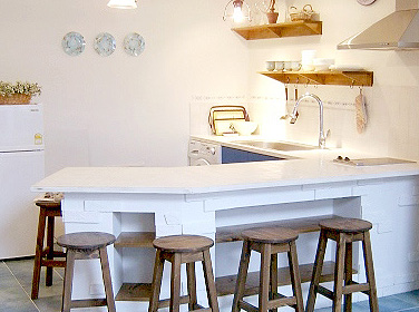 此外,吧臺或上下吊柜也都具有收納功能,一般吧臺可兼做早餐臺,高度以85公分最佳,用一般座椅即可,此吧臺還可當(dāng)工作臺使用;超過100公分的吧臺,就需要使用高腳凳,不過,收納功能相對較強;吊柜也可做成有門片的雙面式或?qū)影迨剑墒占{雜物,層板可放餐杯或咖啡杯、酒杯等裝飾性的餐具。