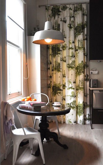 這個(gè)小茶座充滿(mǎn)英式風(fēng)情,陽(yáng)光正好的窗戶(hù)旁邊,放一張英國(guó)鄉(xiāng)村風(fēng)的圓木桌,一邊享受下午茶,一邊享受閱讀的愉悅,生活輕松寫(xiě)意。而另一面窗戶(hù)用草綠色花紋點(diǎn)綴的米色窗簾布,增添室內(nèi)春天元素的同時(shí),和客廳的綠色裝飾起到相互呼應(yīng)的作用。