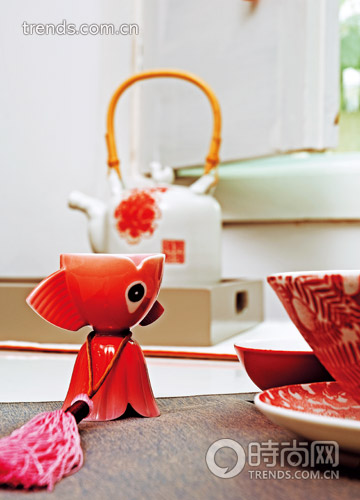 中國(guó)人講究飲食文化,春節(jié)里的家宴更是馬虎不得。讓我們看這個(gè)場(chǎng)景:古雅的花窗下,一場(chǎng)盛宴正要開始。白色圓桌上,年年有“魚”的桌旗上,盛滿了一桌的喜氣洋洋。花朵的杯盤碗碟,是歡喜的紅色,散發(fā)著濃郁的中國(guó)氣息。一笸籮的山楂,映襯著金紅色的鯉魚的圖案,滿目的是鮮亮與快樂。可愛的金魚蛋杯,雖然是最傳統(tǒng)的中國(guó)經(jīng)典圖案和意向,但現(xiàn)代時(shí)尚的設(shè)計(jì)讓我們眼前一亮。這一場(chǎng)盛宴,從形到色,既賞心悅目,又勾起食欲無邊。