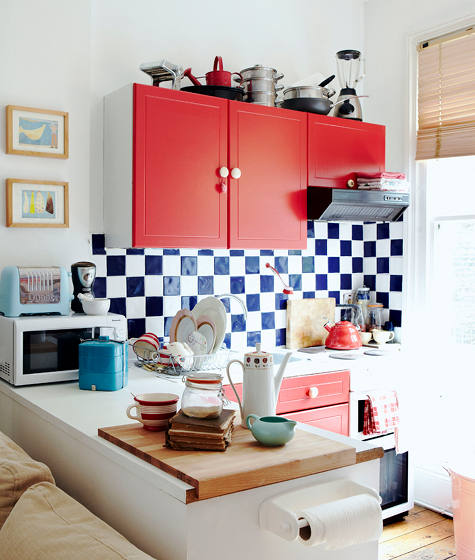 小小空間里的廚房一應俱全,雖然空間很小,但是在色彩的區(qū)分沖擊下,絲豪沒有壓迫感。
