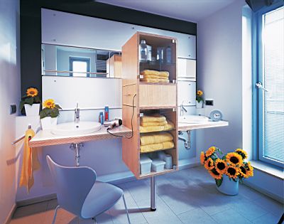 吉事多專柜有不少圓形或長(zhǎng)圓形盆,配合極小的臺(tái)面,非常秀氣。還有樂家卡拉哈里面盆,使用薄層玻璃壓制而成,沒有一點(diǎn)厚重感,延展的臺(tái)面能放不少洗浴用品。這些面盆價(jià)格在一二千元左右。再添置一些存放零散物品的小柜或支架,加上皂碟和毛巾?xiàng)U等五金件,超省錢和省空間的衛(wèi)生間裝修就大功告成了。