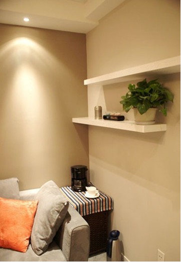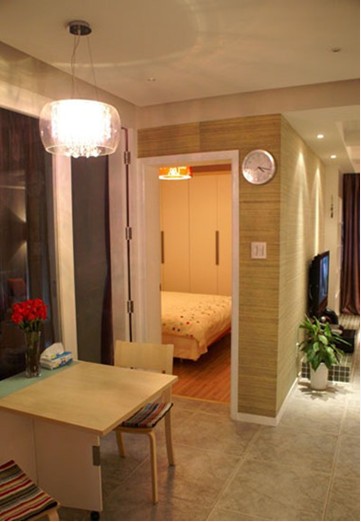 本案例的風(fēng)格是溫馨時(shí)尚裝修,使用面積剛剛65平,暫居兩人,未來(lái)可能的三口之家。用色都以暖色調(diào)為主,簡(jiǎn)潔大氣,又不失溫馨主調(diào)。居家色彩應(yīng)當(dāng)就是如此吧。