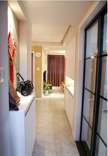 這個(gè)玄關(guān)過(guò)道,鞋柜上方還可以是衣物與包包的置放地點(diǎn)。