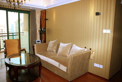 據(jù)HOLA特力屋設(shè)計總監(jiān)Joe介紹,軟裝布置一般用三個層次來呈現(xiàn)分別是:“天、地、墻”。這次同樣按照這個主軸開展我們的打造方案?!疤臁鄙希葜鬟x用的是古典的水晶吊燈,“墻”面上大面積的印花窗簾都透露著古典雅致的風(fēng)格,同時屋主的沙發(fā)是略帶有巴洛克的風(fēng)格,整體呈現(xiàn)古典優(yōu)雅之感。