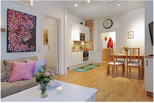 客廳色彩艷麗,家具線條流暢,很簡(jiǎn)潔的北歐風(fēng)格的調(diào)調(diào),干凈而又純凈。裝飾畫的點(diǎn)綴猶如另一種夢(mèng)境,與潔白的空間映襯著,和諧而生動(dòng),別具匠心。