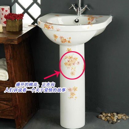 面盆 設(shè)計(jì)打破常規(guī),大膽的在盆體和立柱上添加手繪桃花,為原本略顯呆板的純白色注入了生機(jī)。盛開的桃花無疑會(huì)成為衛(wèi)浴 間里的亮點(diǎn),天天在朵朵桃花的陪伴下,自然天天好心情~~