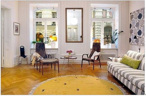 概要: 簡潔的裝修使得空間處理顯得干脆利落,空間裝飾物能夠彌補(bǔ)空間結(jié)構(gòu)上的單調(diào),彰顯屋主的審美情趣。白色是最具有擴(kuò)張感的色調(diào),它能夠讓不大的客廳顯得明亮而寬敞,而點(diǎn)睛的黃色不僅能打破單一用色可能帶來的視覺乏味,而且還能很好地塑造空間的個性?!】蛷d,灰白相間的條紋沙發(fā)搭配黃色的地板和圓形地毯,冬季溫暖,夏季清涼,清新自然溫暖舒適廚房的設(shè)計與客廳相得益彰。