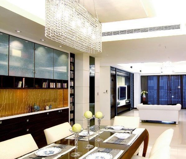 中式餐廳,餐桌依稀可見中式的影子。整體一現(xiàn)代感不變