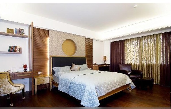 客廳里的混搭出現(xiàn)了中式,房間里的軟裝飾同樣也出現(xiàn)中式,體現(xiàn)整體格調(diào)統(tǒng)一。