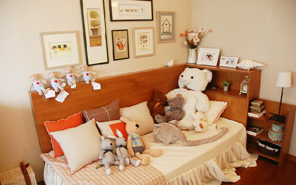 概要: 單身白領(lǐng)MM的50平單身公寓,色調(diào)溫馨充滿童趣,永遠(yuǎn)有著一顆童心,原木色的家居給人的感覺(jué)是溫馨。相較男士的單身公寓冷色調(diào),MM的單身公寓處處都有著可愛(ài)和溫馨,給人以溫暖?! ⌒】蛷d的原木色家居從地板和柜子都能得以體現(xiàn),沙發(fā)淡淡的粉色格子?! ∵@個(gè)經(jīng)過(guò)改良的躺椅沙發(fā)上滿滿都是公仔娃娃。 對(duì)于上班族來(lái)說(shuō),書(shū)房肯定是必不可少的。