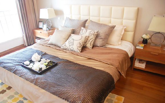 臥室里是白色和咖啡色的混合,簡(jiǎn)約的時(shí)尚給人感覺(jué)舒適自然。