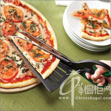 它的切割部分與普通的剪刀類(lèi)似,可以輕而易舉地將批薩切開(kāi)。但是這款產(chǎn)品在“剪刀”旁邊還專(zhuān)門(mén)配有一把小“鏟子”,因此當(dāng)你剪下比薩的同時(shí)還可以順便用這個(gè)小鏟子將剪掉的比薩取出來(lái)。