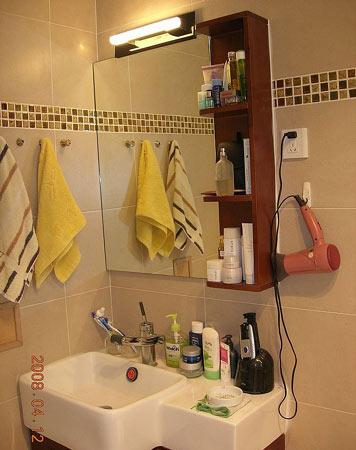 沒有鏡柜的日常情況,很容易掉東西,要是帶柜子的會整齊很多