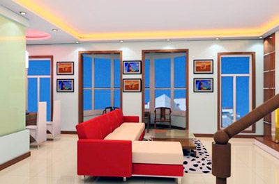 第三是盡可能地增大活動空間。廳內(nèi)擺放現(xiàn)實家具會產(chǎn)生一些死角,并破壞色調(diào)整體協(xié)調(diào)。解決 這一矛盾并不難,應(yīng)根據(jù)客廳的具體情況,設(shè)計出合適的家具,靠墻展示柜及電視柜也度身定做,節(jié) 約每一寸空間,這在視覺上保持了清爽的感覺,自然顯得光亮。另外,若客廳留有暖氣位置,可依墻 設(shè)計一排展示柜,即可充分利用死角,保持統(tǒng)一的基調(diào),還為展示個人文化品位打開了一個窗口。同 時要注意,在地面處理上,要盡量使用淺色材料,避免深色吃光,也能增進客廳內(nèi)的光亮度。