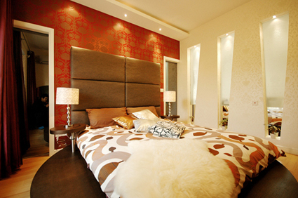 主臥里的背景墻,是時下很多人都特別喜愛的軟包,脫離了硬邦邦的水泥墻面,軟包更有時尚感,也更具舒適度。這里需要重點(diǎn)看下左邊的墻面,它的獨(dú)物設(shè)計(jì)理念不是偶然的,雖說風(fēng)水學(xué)上講,床最好不要對著鏡子,但是這樣的時尚感十足的裝飾,哪個年輕人不愛呢。