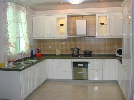 U形廚房方便取用每一件物品,可最大限度地利用空間進(jìn)行烹飪和儲(chǔ)物。黑白灰為基調(diào),溫暖的燈光運(yùn)用,緩解了素色的空曠與冷清。達(dá)到視覺(jué)上的推進(jìn)和心理上的飽滿。線條簡(jiǎn)單的櫥柜勾勒出舒適清爽的廚房環(huán)境。