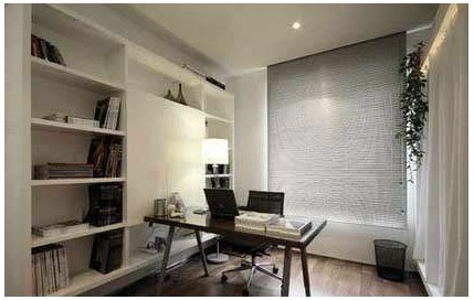 把電視臥入墻里,使屏幕與墻體保持水平,在兩側(cè)均勻打上小孔不會(huì)影響聲音效果。書房門運(yùn)用隱藏式的設(shè)計(jì)理念,沒(méi)有制作門口,使得視聽(tīng)墻具有很好的整體效果,書房門面寫著古詩(shī)書法,宣紙質(zhì)感配以草墩將一絲禪意緩緩的流露出來(lái)。