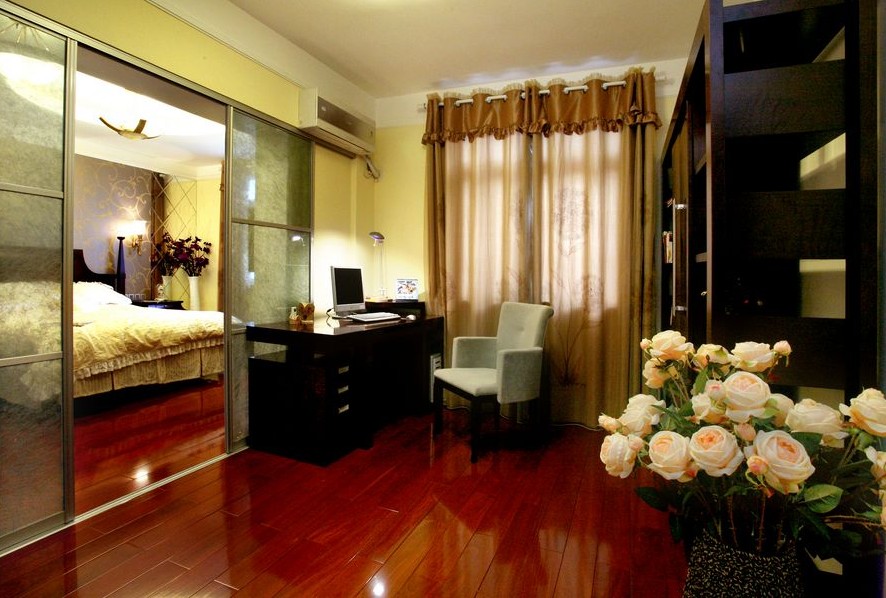主臥里整體上用現(xiàn)代手法統(tǒng)一起來,更加實用?,F(xiàn)代化的書房,簡歐的臥室布置讓生活更有品位。