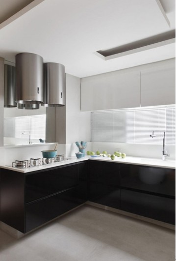 廚房采用了光亮的黑油漆,人造大理石臺面干凈宜打理。現(xiàn)代廚房并非只為烹調(diào)而生,它更強(qiáng)化其生活及融合整個居家氛圍。
