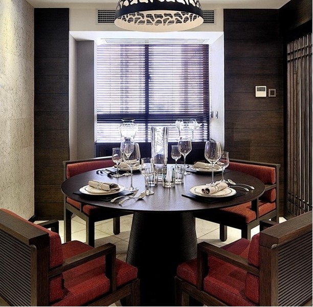餐廳空間利用簡單的墻面木板和壁紙等材料來打造出一個很簡單又不是檔次的氛圍。其簡單的造型讓沉悶的中式風格得到了舒緩。一張圓形餐桌在整個空間的烘襯下,配上穩(wěn)重的深紅色,不管從視覺上還是舒適度上都運用的相當?shù)轿弧?/p>